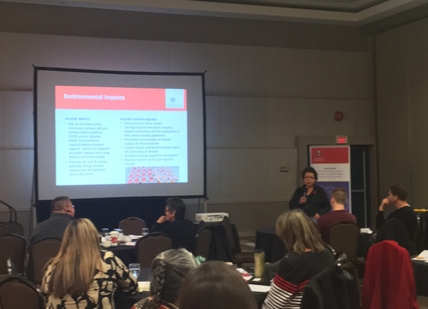 Belleau emphasized the interrelatedness of mental wellness, traditional/spiritual wellness, and food security in times of disaster and crisis. She described the economic and environmental concerns, including the loss of medicines/plants which are often beyond the scope of government's recovery efforts.